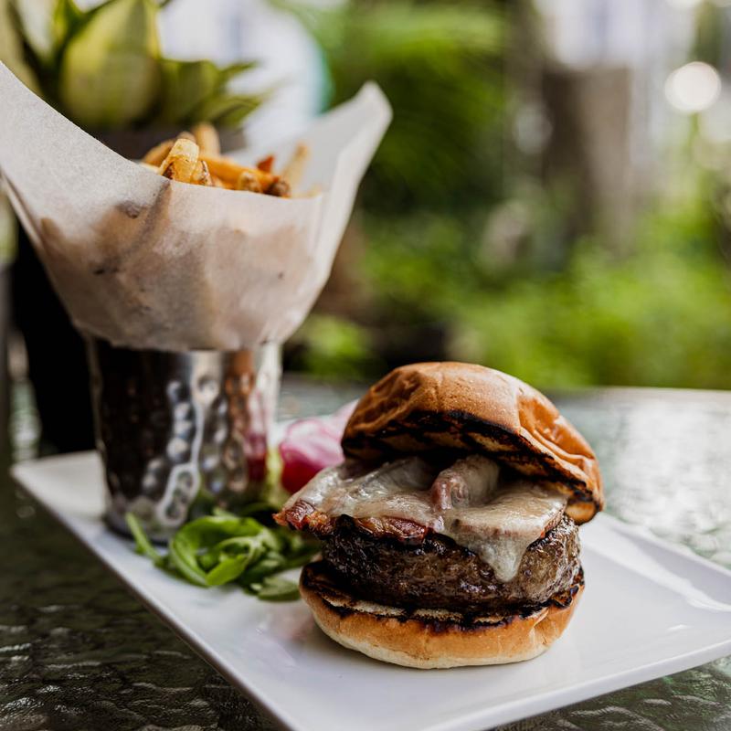 Caramelized Onions, 18 Month Aged Gouda, Green Apple Slaw (Choice of: Hand cut Fries, House Made Paprika Smoked Potato Chips, Side Caesar, or Side Mixed Greens)