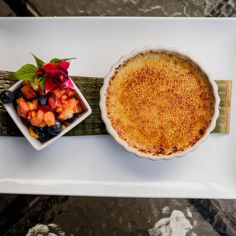 Créme Anglaise, Raspberries, Spicy Pistachio Brittle