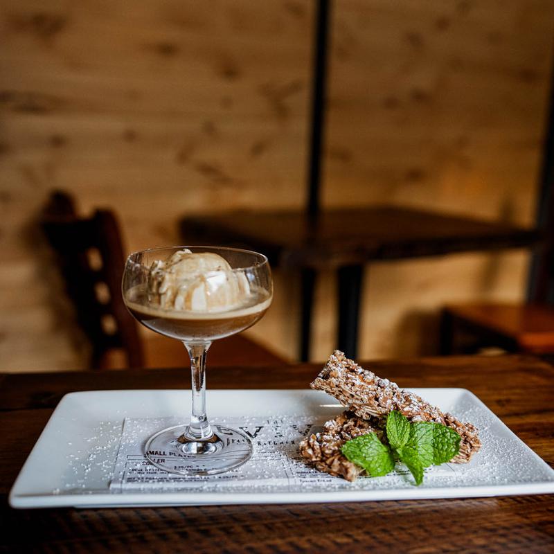 Salted Caramel Ice Cream, Fresh Brewed Espresso, Chocolate Almond Crunch Bar